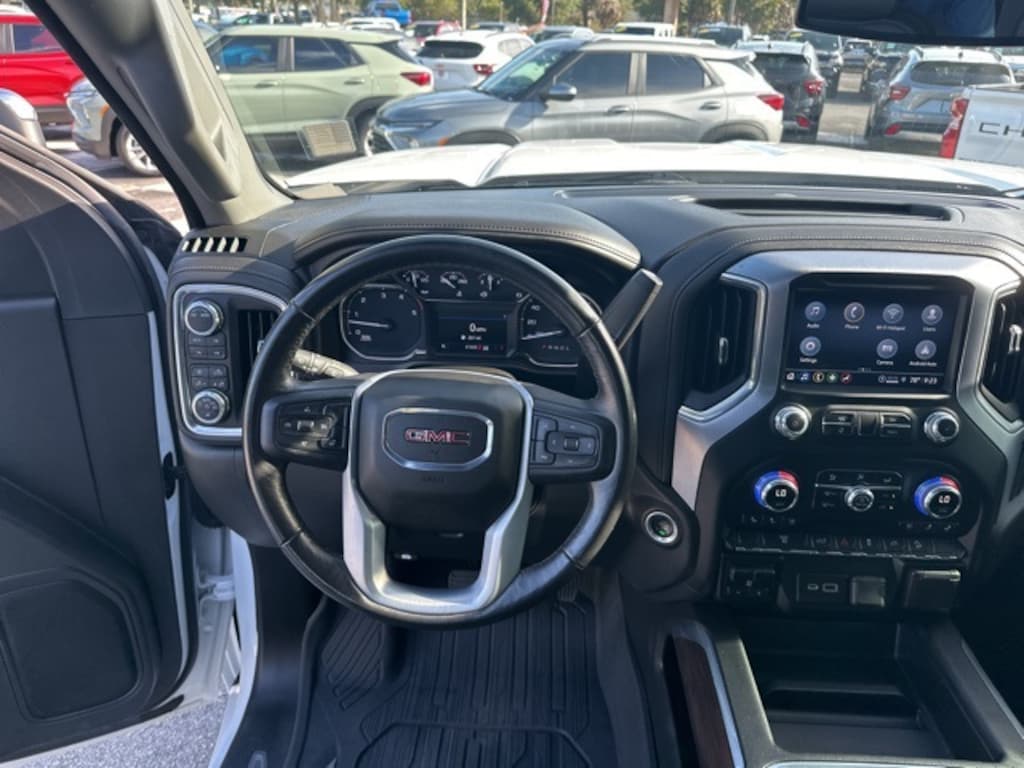 Preferred Equipment Group 4SA (12-Volt Rear Auxiliary Power Outlet, 120-Volt Bed Mounted Power Outlet, 120-Volt Instrument Panel Power Outlet, 2-Speed Active Transfer Case, 2nd Row Dual USB Charge-Only Ports, 4.2" Diagonal Color Display Driver Info Center, Chrome Surround Grille w/High Gloss Black Mesh, Compass Located In Instrument Cluster, Deep-Tinted Glass, Electric Rear-Window Defogger, Electrical Lock Control Steering Column, GMC Connected Access Capable, Integrated Trailer Brake Controller, Keyless Open & Start, LED Cargo Area Lighting, Manual Tilt-Wheel/Telescoping Steering Column, OnStar & GMC Connected Services Capable, Power Door Locks, Power Front Passenger Windows w/Express Up/Down, Power Rear Windows w/Express Down, Power Windows w/Driver Express Up/Down, Rear Wheelhouse Liners, Remote Vehicle Starter System, Steering Wheel Audio Controls, Unauthorized Entry Theft-Deterrent System, Wi-Fi Hotspot Capable, and Wireless Phone Projection), SLT Convenience Package (2 USB Ports, 2 USB Ports (1st Row), Floor-Mounted Center Console, Front Bucket Seats, Heated & Ventilated Front Bucket Seats, Heated 2nd Row Outboard Seats, LED Smoked Amber Roof Marker Lamps, Power Sliding Rear Window w/Defogger, and Universal Home Remote), Suspension Package, X31 Off-Road Package (Hill Descent Control and Off-Road Suspension), 10-Speed Automatic, 4WD, Jet Black Leather, 10-Way Power Driver Seat Adjuster w/Lumbar, 10-Way Power Passenger Seat Adjuster w/Lumbar, 18" Machined Aluminum Wheels, 220 Amps Alternator, 3.42 Axle Ratio, 3.73 Rear Axle Ratio, 4-Wheel Disc Brakes, 6 Speakers, 6-Speaker Audio System Feature, 6" Rectangular Chromed Tubular Assist Steps (LPO), ABS brakes, Air Conditioning, Alloy wheels, AM/FM radio: SiriusXM with 360L, Apple CarPlay/Android Auto, Auto-dimming door mirrors, Auto-dimming Rear-View mirror, Automatic temperature control, Bed View Camera w/2 Trailer Camera Provisions, Brake assist, Bumpers: chrome, Compass, Cruise Control, Delay-off headlights, Driver door bin, Driver Memory, Driver vanity mirror, Dual front impact airbags, Dual front side impact airbags, Electronic Stability Control, Emergency communication system: OnStar and GMC Connected Services capable, Engine Block Heater, Exhaust Brake, Front 40/20/40 Split-Bench Seats w/Lockable Storage, Front anti-roll bar, Front Center Armrest w/Storage, Front dual zone A/C, Front fog lights, Front reading lights, Front wheel independent suspension, Fully automatic headlights, Heated door mirrors, Heated Driver & Front Outboard Passenger Seats, Heated front seats, Heated steering wheel, Heavy-Duty 80 Amp Battery, Hitch Guidance w/Hitch View, Illuminated entry, In-Vehicle Trailering System App, Low tire pressure warning, Memory seat, Not Equipped w/Heated 2nd Row Outboard Seats, Occupant sensing airbag, Outside temperature display, Overhead airbag, Overhead console, Panic alarm, Passenger door bin, Passenger vanity mirror, Perf Leather-Appointed Front Outboard Seat Trim, Pickup Box, Power door mirrors, Power driver seat, Power passenger seat, Power steering, Power windows, Premium audio system: Premium GMC Infotainment System, Radio: AM/FM w/Premium GMC Infotainment System, Rear reading lights, Rear seat center armrest, Rear step bumper, Rear window defroster, Remote keyless entry, Security system, SiriusXM w/360L, Speed-sensing steering, Split folding rear seat, Spray-On Pickup Box Bed Liner w/GMC Logo, Steering wheel mounted audio controls, Tachometer, Telescoping steering wheel, Tilt steering wheel, Traction control, Trip computer, Turn signal indicator mirrors, Variably intermittent wipers, Voltmeter, and Winter Grille Cover. 10-Speed Automatic, 4WD, Jet Black Leather, 10-Way Power Driver Seat Adjuster w/Lumbar, 10-Way Power Passenger Seat Adjuster w/Lumbar, 12-Volt Rear Auxiliary Power Outlet, 120-Volt Bed Mounted Power Outlet, 120-Volt Instrument Panel Power Outlet, 18" Machined Aluminum Wheels, 2 USB Ports, 2 USB Ports (1st Row), 2-Speed Active Transfer Case, 2