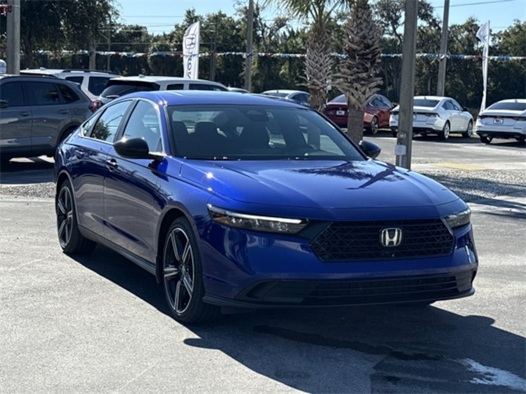 2025 Honda Accord Hybrid Sport 2.0L I4 DOHC 16V, 4-Wheel Disc Brakes, 8 Speakers, ABS brakes, Adaptive Cruise Control: Adaptive Cruise Control (ACC) with Low-Speed Follow, Air Conditioning, Alloy wheels, AM/FM radio, Apple CarPlay/Android Auto, Auto High-beam Headlights, Automatic temperature control, Blind Spot Information (BSI) System warning, Brake assist, Bumpers: body-color, Compass, Cruise Control, Delay-off headlights, Driver door bin, Driver vanity mirror, Dual front impact airbags, Dual front side impact airbags, Electronic Stability Control, Emergency communication system: HondaLink, Fabric Seat Trim, Four wheel independent suspension, Front anti-roll bar, Front Bucket Seats, Front Center Armrest, Front dual zone A/C, Front reading lights, Fully automatic headlights, Heated Front Bucket Seats, Heated front seats, Illuminated entry, Knee airbag, Lane departure: Lane Keeping Assist System (LKAS) active, Leather Shift Knob, Leather steering wheel, Low tire pressure warning, Occupant sensing airbag, Outside temperature display, Overhead airbag, Overhead console, Panic alarm, Passenger door bin, Passenger vanity mirror, Power door mirrors, Power driver seat, Power moonroof, Power steering, Power windows, Radio data system, Radio: 180-Watt Audio System, Rear anti-roll bar, Rear reading lights, Rear seat center armrest, Rear side impact airbag, Rear View Camera, Rear window defroster, Remote keyless entry, Security system, Speed-sensing steering, Speed-Sensitive Wipers, Split folding rear seat, Spoiler, Steering wheel mounted audio controls, Telescoping steering wheel, Tilt steering wheel, Traction control, Trip computer, Variably intermittent wipers, Wheels: 19" x 8.5J Berlina Black, 2.0L I4 DOHC 16V.