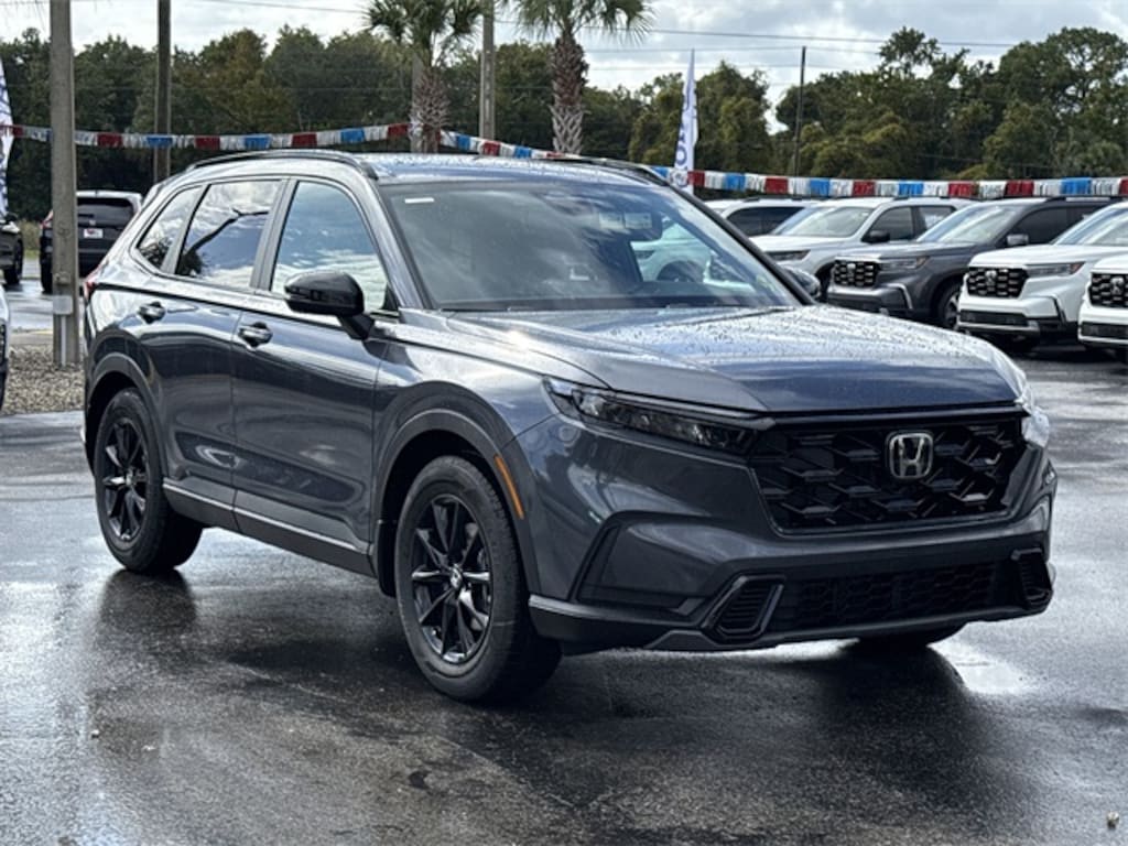 Recent Arrival! 2026 Honda CR-V Hybrid Sport 2.0L I4 DOHC 16V, 4-Wheel Disc Brakes, 6 Speakers, ABS brakes, Adaptive Cruise Control: Adaptive Cruise Control (ACC) with Low-Speed Follow, Air Conditioning, Alloy wheels, Apple CarPlay/Android Auto, Auto High-beam Headlights, Automatic temperature control, Blind Spot Information (BSI) System warning, Brake assist, Bumpers: body-color, Cloth Seat Trim, Compass, Cruise Control, Delay-off headlights, Driver door bin, Driver vanity mirror, Dual front impact airbags, Dual front side impact airbags, Electronic Stability Control, Four wheel independent suspension, Front anti-roll bar, Front Bucket Seats, Front Center Armrest, Front dual zone A/C, Front reading lights, Fully automatic headlights, Heated door mirrors, Heated Front Bucket Seats, Heated front seats, Illuminated entry, Knee airbag, Leather Shift Knob, Leather steering wheel, Low tire pressure warning, Occupant sensing airbag, Outside temperature display, Overhead airbag, Overhead console, Panic alarm, Passenger door bin, Passenger vanity mirror, Power door mirrors, Power driver seat, Power moonroof, Power steering, Power windows, Radio data system, Radio: 240-Watt AM/FM Audio System, Rear anti-roll bar, Rear reading lights, Rear seat center armrest, Rear side impact airbag, Rear View Camera, Rear window defroster, Rear window wiper, Remote keyless entry, Security system, Speed-sensing steering, Speed-Sensitive Wipers, Split folding rear seat, Spoiler, Steering wheel mounted audio controls, Telescoping steering wheel, Tilt steering wheel, Traction control, Trip computer, Turn signal indicator mirrors, Variably intermittent wipers, Wheels: 18" Berlina Black, 2.0L I4 DOHC 16V.
