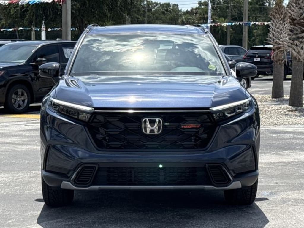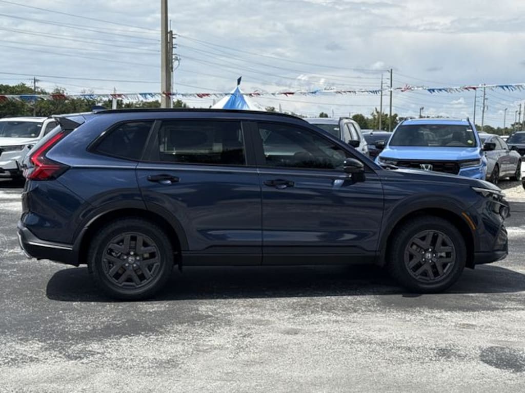 2026 Honda CR-V Hybrid TrailSport 2.0L I4 DOHC 16V, 4-Wheel Disc Brakes, 8 Speakers, ABS brakes, Adaptive Cruise Control: Adaptive Cruise Control (ACC) with Low-Speed Follow, Air Conditioning, Alloy wheels, AM/FM radio, Apple CarPlay/Android Auto, Auto High-beam Headlights, Automatic temperature control, Blind Spot Information (BSI) System warning, Brake assist, Bumpers: body-color, Cloth Seat Trim, Compass, Cruise Control, Delay-off headlights, Driver door bin, Driver vanity mirror, Dual front impact airbags, Dual front side impact airbags, Electronic Stability Control, Four wheel independent suspension, Front anti-roll bar, Front Bucket Seats, Front Center Armrest, Front dual zone A/C, Front reading lights, Fully automatic headlights, Heated door mirrors, Heated Front Bucket Seats, Heated front seats, Heated steering wheel, Illuminated entry, Knee airbag, Leather Shift Knob, Leather steering wheel, Low tire pressure warning, Occupant sensing airbag, Outside temperature display, Overhead airbag, Overhead console, Panic alarm, Passenger door bin, Passenger vanity mirror, Power door mirrors, Power driver seat, Power moonroof, Power steering, Power windows, Radio data system, Radio: 320-Watt AM/FM Audio System, Rear anti-roll bar, Rear reading lights, Rear seat center armrest, Rear side impact airbag, Rear View Camera, Rear window defroster, Rear window wiper, Remote keyless entry, Security system, Speed-sensing steering, Speed-Sensitive Wipers, Split folding rear seat, Spoiler, Steering wheel mounted audio controls, Telescoping steering wheel, Tilt steering wheel, Traction control, Trip computer, Turn signal indicator mirrors, Variably intermittent wipers, Wheels: 18" Shark Grey, 2.0L I4 DOHC 16V.