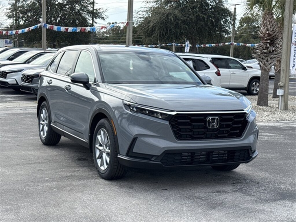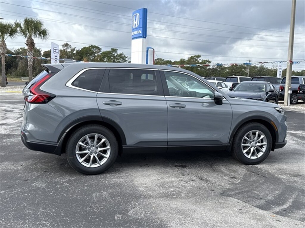 2026 Honda CR-V EX 4-Wheel Disc Brakes, 6 Speakers, ABS brakes, Adaptive Cruise Control: Adaptive Cruise Control (ACC) with Low-Speed Follow, Air Conditioning, Alloy wheels, AM/FM radio, Apple CarPlay/Android Auto, Auto High-beam Headlights, Automatic temperature control, Blind Spot Information (BSI) System warning, Brake assist, Bumpers: body-color, Cloth Seat Trim, Compass, Cruise Control, Delay-off headlights, Driver door bin, Driver vanity mirror, Dual front impact airbags, Dual front side impact airbags, Electronic Stability Control, Four wheel independent suspension, Front anti-roll bar, Front Bucket Seats, Front Center Armrest, Front dual zone A/C, Front reading lights, Fully automatic headlights, Heated door mirrors, Heated Front Bucket Seats, Heated front seats, Illuminated entry, Knee airbag, Low tire pressure warning, Occupant sensing airbag, Outside temperature display, Overhead airbag, Overhead console, Panic alarm, Passenger door bin, Passenger vanity mirror, Power door mirrors, Power driver seat, Power moonroof, Power steering, Power windows, Radio data system, Radio: 240-Watt AM/FM Audio System, Rear anti-roll bar, Rear reading lights, Rear seat center armrest, Rear side impact airbag, Rear View Camera, Rear window defroster, Rear window wiper, Remote keyless entry, Security system, Speed-sensing steering, Speed-Sensitive Wipers, Split folding rear seat, Spoiler, Steering wheel mounted audio controls, Tachometer, Telescoping steering wheel, Tilt steering wheel, Traction control, Trip computer, Turn signal indicator mirrors, Variably intermittent wipers, Wheels: 18" Sparkle Silver.