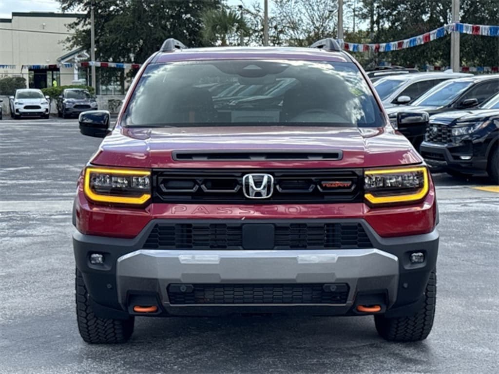 2026 Honda Passport TrailSport 4-Wheel Disc Brakes, 9 Speakers, ABS brakes, Adaptive Cruise Control: Adaptive Cruise Control (ACC) with Low-Speed Follow, Air Conditioning, Alloy wheels, Apple CarPlay/Android Auto, Auto High-beam Headlights, Auto-dimming Rear-View mirror, Automatic temperature control, Blind Spot Information (BSI) System warning, Brake assist, Compass, Cruise Control, Delay-off headlights, Driver door bin, Driver vanity mirror, Driver's Seat Mounted Armrest, Dual front impact airbags, Dual front side impact airbags, Durable Leatherette & Cloth Seat Trim, Electronic Stability Control, Emergency communication system: HondaLink, Four wheel independent suspension, Front anti-roll bar, Front Bucket Seats, Front Center Armrest, Front dual zone A/C, Front fog lights, Front reading lights, Fully automatic headlights, Heated door mirrors, Heated Front Bucket Seats, Heated front seats, HVAC memory, Illuminated entry, Knee airbag, Lane departure: Lane Keeping Assist System (LKAS) active, Leather steering wheel, Low tire pressure warning, Memory seat, Navigation system: Google Maps, Occupant sensing airbag, Outside temperature display, Overhead airbag, Overhead console, Panic alarm, Passenger door bin, Passenger seat mounted armrest, Passenger vanity mirror, Power door mirrors, Power driver seat, Power Liftgate, Power moonroof, Power passenger seat, Power steering, Power windows, Radio data system, Radio: Audio System w/9 Speakers, Rear air conditioning, Rear anti-roll bar, Rear reading lights, Rear seat center armrest, Rear View Camera, Rear window defroster, Rear window wiper, Remote keyless entry, Security system, Speed-sensing steering, Split folding rear seat, Spoiler, Steering wheel mounted audio controls, Tachometer, Telescoping steering wheel, Tilt steering wheel, Traction control, Trip computer, Turn signal indicator mirrors, Variably intermittent wipers, Wheels: 18" Matte Shark Gray Alloy.