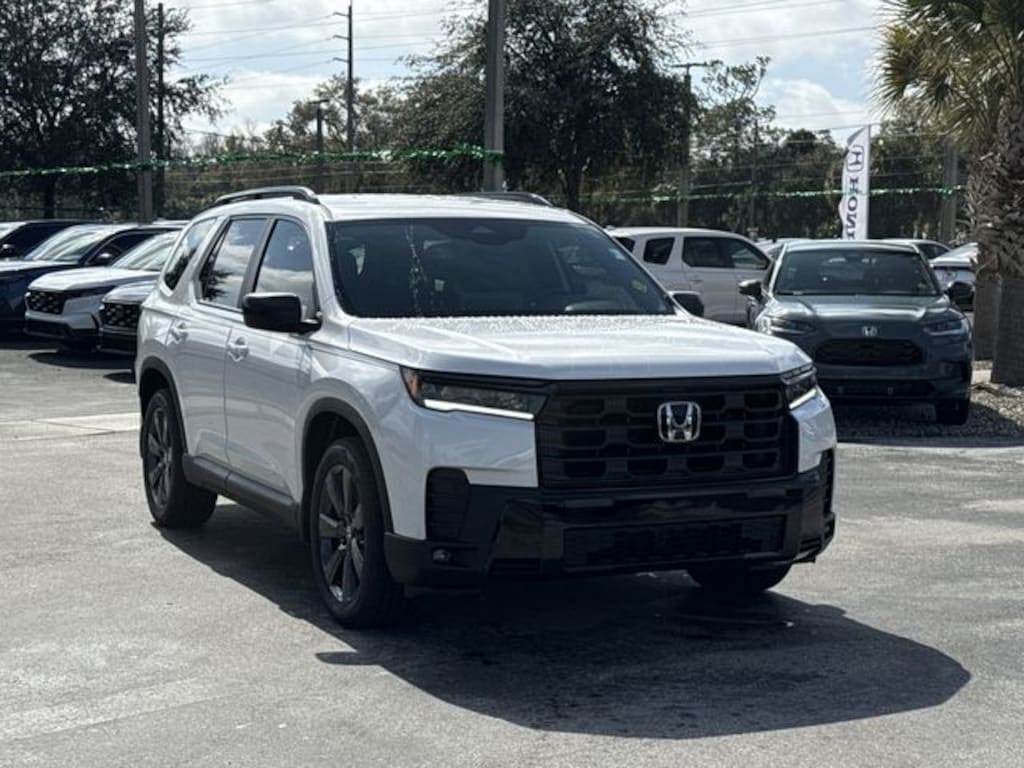 2026 Honda Pilot Sport 3rd row seats: split-bench, 4-Wheel Disc Brakes, 9 Speakers, ABS brakes, Adaptive Cruise Control: Adaptive Cruise Control (ACC) with Low-Speed Follow, Air Conditioning, Alloy wheels, Apple CarPlay/Android Auto, Auto High-beam Headlights, Automatic temperature control, Blind Spot Information (BSI) System warning, Brake assist, Bumpers: body-color, Cloth Seat Trim, Compass, Cruise Control, Delay-off headlights, Driver door bin, Driver vanity mirror, Dual front impact airbags, Dual front side impact airbags, Electronic Stability Control, Emergency communication system: HondaLink, Four wheel independent suspension, Front anti-roll bar, Front Bucket Seats, Front Center Armrest, Front dual zone A/C, Front fog lights, Front reading lights, Fully automatic headlights, Heated Front Bucket Seats, Heated front seats, HondaLink, HondaLink Subscription Services, Illuminated entry, Knee airbag, Lane departure: Lane Keeping Assist System (LKAS) active, Low tire pressure warning, Navigation system: Google Maps, Occupant sensing airbag, Outside temperature display, Overhead airbag, Overhead console, Panic alarm, Passenger door bin, Passenger vanity mirror, Power door mirrors, Power driver seat, Power Liftgate, Power passenger seat, Power steering, Power windows, Radio data system, Radio: 245-Watt Audio System, Rear air conditioning, Rear anti-roll bar, Rear reading lights, Rear seat center armrest, Rear View Camera, Rear window defroster, Rear window wiper, Reclining 3rd row seat, Remote keyless entry, Security system, Speed-sensing steering, Speed-Sensitive Wipers, Split folding rear seat, Spoiler, Steering wheel mounted audio controls, Tachometer, Telescoping steering wheel, Tilt steering wheel, Traction control, Trip computer, Variably intermittent wipers, Wheels: 20" Shark Gray with Black Lug Nuts.