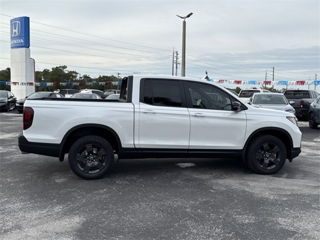 2026 Honda Ridgeline TrailSport Blk Lth Leather, 4-Wheel Disc Brakes, 4.33 Axle Ratio, 7 Speakers, ABS brakes, Air Conditioning, Alloy wheels, AM/FM radio: SiriusXM, Auto-dimming Rear-View mirror, Automatic temperature control, Blind Spot Information (BSI) System warning, Bluetooth® Hands-Free Link, Brake assist, Bumpers: body-color, Compass, Cruise Control, Delay-off headlights, Driver door bin, Driver vanity mirror, Driver's Seat Mounted Armrest, Dual front impact airbags, Dual front side impact airbags, Electronic Stability Control, Emergency communication system: HondaLink Assist, Four wheel independent suspension, Front anti-roll bar, Front Bucket Seats, Front dual zone A/C, Front fog lights, Front reading lights, Fully automatic headlights, Garage door transmitter: HomeLink, Heated door mirrors, Heated Front Bucket Seats, Heated front seats, Heated steering wheel, Honda Satellite-Linked Navigation System, Illuminated entry, Leather Seat Trim, Leather steering wheel, Low tire pressure warning, Memory seat, Navigation system: Honda Satellite-Linked Navigation System, Occupant sensing airbag, Outside temperature display, Overhead airbag, Overhead console, Panic alarm, Passenger door bin, Passenger seat mounted armrest, Passenger vanity mirror, Power door mirrors, Power driver seat, Power moonroof, Power passenger seat, Power steering, Power windows, Radio data system, Radio: 215-Watt Audio System with 7 Speakers, Rear air conditioning, Rear anti-roll bar, Rear reading lights, Rear seat center armrest, Rear step bumper, Rear View Camera, Rear window defroster, Remote keyless entry, Security system, SiriusXM, Speed-sensing steering, Split folding rear seat, Steering wheel mounted audio controls, Tachometer, Telescoping steering wheel, Tilt steering wheel, Traction control, Trip computer, Turn signal indicator mirrors, Variably intermittent wipers, Wheels: 18" Trailsport Shark Gray Alloy, Blk Lth Leather.