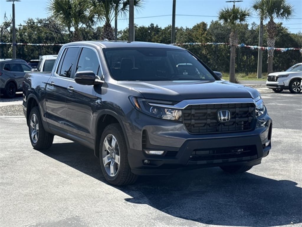 2026 Honda Ridgeline RTL Blk Lth Leather, 4-Wheel Disc Brakes, 4.33 Axle Ratio, 7 Speakers, ABS brakes, Air Conditioning, Alloy wheels, AM/FM radio: SiriusXM, Auto-dimming Rear-View mirror, Automatic temperature control, Blind Spot Information (BSI) System warning, Bluetooth® Hands-Free Link, Brake assist, Bumpers: body-color, Compass, Cruise Control, Delay-off headlights, Driver door bin, Driver vanity mirror, Driver's Seat Mounted Armrest, Dual front impact airbags, Dual front side impact airbags, Electronic Stability Control, Emergency communication system: HondaLink Assist, Four wheel independent suspension, Front anti-roll bar, Front Bucket Seats, Front dual zone A/C, Front fog lights, Front reading lights, Fully automatic headlights, Garage door transmitter: HomeLink, Heated door mirrors, Heated Front Bucket Seats, Heated front seats, Illuminated entry, Leather Seat Trim, Leather steering wheel, Low tire pressure warning, Memory seat, Occupant sensing airbag, Outside temperature display, Overhead airbag, Overhead console, Panic alarm, Passenger door bin, Passenger seat mounted armrest, Passenger vanity mirror, Power door mirrors, Power driver seat, Power moonroof, Power passenger seat, Power steering, Power windows, Radio data system, Radio: 215-Watt Audio System with 7 Speakers, Rear air conditioning, Rear anti-roll bar, Rear reading lights, Rear seat center armrest, Rear step bumper, Rear View Camera, Rear window defroster, Remote keyless entry, Security system, SiriusXM, Speed-sensing steering, Split folding rear seat, Steering wheel mounted audio controls, Tachometer, Telescoping steering wheel, Tilt steering wheel, Traction control, Trip computer, Turn signal indicator mirrors, Variably intermittent wipers, Wheels: 18" Pewter Gray Machine-Finished Alloy, Blk Lth Leather.