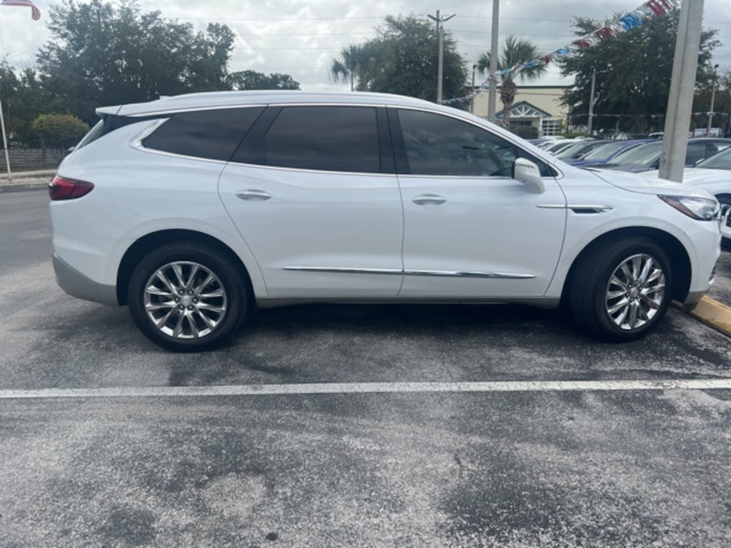 Preferred Equipment Group 1SL, Sound & Sites Package (120-Volt Power Outlet, Bose Performance-Enhanced 10-Speaker System, Radio: Buick Infotainment Sys AM/FM Stereo w/Nav, and SiriusXM w/360L), FWD, 18" Painted Aluminum Wheels, 20" Polished Aluminum Wheels, 3.49 Axle Ratio, 3rd row seats: split-bench, 4-Wheel Disc Brakes, 6 Speakers, 6-Speaker Audio System Feature, 7-Passenger Seating, ABS brakes, Air Conditioning, Alloy wheels, AM/FM radio: SiriusXM with 360L, Apple CarPlay/Android Auto, Auto-dimming door mirrors, Auto-dimming Rear-View mirror, Automatic temperature control, Brake assist, Bumpers: body-color, Compass, Cruise Control, Delay-off headlights, Driver door bin, Driver vanity mirror, Dual front impact airbags, Dual front side impact airbags, Electronic Stability Control, Emergency communication system: OnStar and Buick connected services capable, Four wheel independent suspension, Front anti-roll bar, Front Bucket Seats, Front Center Armrest, Front dual zone A/C, Front reading lights, Fully automatic headlights, HD Surround Vision, Heated door mirrors, Heated Driver & Front Passenger Seats, Heated front seats, Illuminated entry, Inside Rearview Mirror w/Full Camera Display, Leather steering wheel, Low tire pressure warning, Occupant sensing airbag, Outside temperature display, Overhead airbag, Overhead console, Panic alarm, Passenger door bin, Passenger vanity mirror, Perforated Leather-Appointed Seat Trim, Power door mirrors, Power Driver Lumbar Control Seat Adjuster, Power driver seat, Power Liftgate, Power Passenger Lumbar Control Seat Adjuster, Power passenger seat, Power steering, Power windows, Premium audio system: Buick Infotainment System, Radio data system, Radio: Buick Infotainment System AM/FM Stereo, Rear air conditioning, Rear anti-roll bar, Rear Parking Sensors, Rear reading lights, Rear window defroster, Rear window wiper, Remote keyless entry, Roof rack: rails only, Security system, Speed-sensing steering, Spoiler, Steering wheel mounted audio controls, Tachometer, Telescoping steering wheel, Tilt steering wheel, Traction control, Trip computer, Turn signal indicator mirrors, Universal Garage Door Opener, Variably intermittent wipers, and Voltmeter. FWD, 120-Volt Power Outlet, 18" Painted Aluminum Wheels, 20" Polished Aluminum Wheels, 3.49 Axle Ratio, 3rd row seats: split-bench, 4-Wheel Disc Brakes, 6 Speakers, 6-Speaker Audio System Feature, 7-Passenger Seating, ABS brakes, Air Conditioning, Alloy wheels, AM/FM radio: SiriusXM with 360L, Apple CarPlay/Android Auto, Auto-dimming door mirrors, Auto-dimming Rear-View mirror, Automatic temperature control, Bose Performance-Enhanced 10-Speaker System, Brake assist, Bumpers: body-color, Compass, Cruise Control, Delay-off headlights, Driver door bin, Driver vanity mirror, Dual front impact airbags, Dual front side impact airbags, Electronic Stability Control, Emergency communication system: OnStar and Buick connected services capable, Four wheel independent suspension, Front anti-roll bar, Front Bucket Seats, Front Center Armrest, Front dual zone A/C, Front reading lights, Fully automatic headlights, HD Surround Vision, Heated door mirrors, Heated Driver & Front Passenger Seats, Heated front seats, Illuminated entry, Inside Rearview Mirror w/Full Camera Display, Leather steering wheel, Low tire pressure warning, Occupant sensing airbag, Outside temperature display, Overhead airbag, Overhead console, Panic alarm, Passenger door bin, Passenger vanity mirror, Perforated Leather-Appointed Seat Trim, Power door mirrors, Power Driver Lumbar Control Seat Adjuster, Power driver seat, Power Liftgate, Power Passenger Lumbar Control Seat Adjuster, Power passenger seat, Power steering, Power windows, Preferred Equipment Group 1SL, Premium audio system: Buick Infotainment System, Radio data system, Radio: Buick Infotainment Sys AM/FM Stereo w/Nav, Radio: Buick Infotainment System AM/FM Stereo, Rear air conditioning, Rear anti-roll bar, Rear Parking Sensors, Rear readi