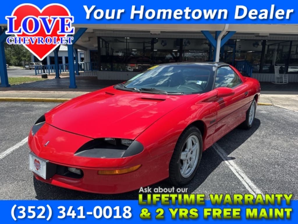 5.7L V8 SMPI 16V, ABS brakes, Alloy wheels, 4 Speakers, 4-Wheel Disc Brakes, Air Conditioning, AM/FM radio, Cassette, Driver door bin, Driver vanity mirror, Dual front impact airbags, Front anti-roll bar, Front Bucket Seats, Front reading lights, Front wheel independent suspension, Passenger door bin, Passenger vanity mirror, Power steering, Rear anti-roll bar, Spoiler, Sport steering wheel, Tachometer, Tilt steering wheel, Variably intermittent wipers, and Voltmeter. 5.7L V8 SMPI 16V, ABS brakes, Alloy wheels. 1997 Chevrolet Camaro Z28 Bright Red Clean CARFAX. All vehicles have the Red Alert rear end deterrent third brake light safety system installed for $499. Dealer Document Processing Fee of 899 -- this charge represents cost and profit to the dealer for items such as inspections, cleaning, and adjusting vehicles and preparing documents related to the sale.