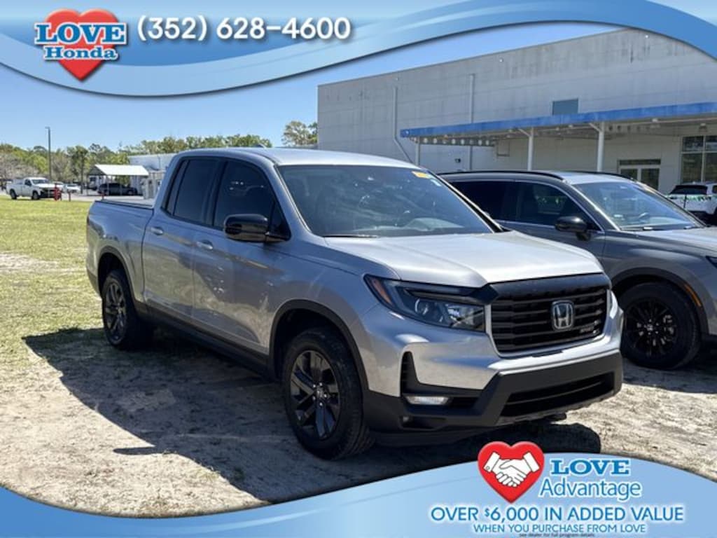 Cloth, 4-Wheel Disc Brakes, 4.33 Axle Ratio, 7 Speakers, ABS brakes, Air Conditioning, Alloy wheels, AM/FM radio, Apple CarPlay/Android Auto, Automatic temperature control, Bluetooth® Hands-Free Link, Brake assist, Bumpers: body-color, Cruise Control, Delay-off headlights, Driver door bin, Driver vanity mirror, Driver's Seat Mounted Armrest, Dual front impact airbags, Dual front side impact airbags, Electronic Stability Control, Fabric Seat Trim, Forward collision: Collision Mitigation Braking System (CMBS) + FCW mitigation, Four wheel independent suspension, Front anti-roll bar, Front Bucket Seats, Front dual zone A/C, Front fog lights, Front reading lights, Fully automatic headlights, Garage door transmitter: HomeLink, Illuminated entry, Low tire pressure warning, Occupant sensing airbag, Outside temperature display, Overhead airbag, Overhead console, Panic alarm, Passenger door bin, Passenger seat mounted armrest, Passenger vanity mirror, Power door mirrors, Power steering, Power windows, Radio data system, Radio: 215-Watt Audio System w/7 Speakers, Rear air conditioning, Rear anti-roll bar, Rear reading lights, Rear seat center armrest, Rear step bumper, Rear View Camera, Rear window defroster, Remote keyless entry, Security system, Speed-sensing steering, Split folding rear seat, Steering wheel mounted audio controls, Tachometer, Telescoping steering wheel, Tilt steering wheel, Traction control, Trip computer, Variably intermittent wipers, and Wheels: 18" Shark Gray Alloy. Cloth, 4-Wheel Disc Brakes, 4.33 Axle Ratio, 7 Speakers, ABS brakes, Air Conditioning, Alloy wheels, AM/FM radio, Apple CarPlay/Android Auto, Automatic temperature control, Bluetooth® Hands-Free Link, Brake assist, Bumpers: body-color, Cruise Control, Delay-off headlights, Driver door bin, Driver vanity mirror, Driver's Seat Mounted Armrest, Dual front impact airbags, Dual front side impact airbags, Electronic Stability Control, Fabric Seat Trim, Forward collision: Collision Mitigation Braking System (CMBS) + FCW mitigation, Four wheel independent suspension, Front anti-roll bar, Front Bucket Seats, Front dual zone A/C, Front fog lights, Front reading lights, Fully automatic headlights, Garage door transmitter: HomeLink, Illuminated entry, Low tire pressure warning, Occupant sensing airbag, Outside temperature display, Overhead airbag, Overhead console, Panic alarm, Passenger door bin, Passenger seat mounted armrest, Passenger vanity mirror, Power door mirrors, Power steering, Power windows, Radio data system, Radio: 215-Watt Audio System w/7 Speakers, Rear air conditioning, Rear anti-roll bar, Rear reading lights, Rear seat center armrest, Rear step bumper, Rear View Camera, Rear window defroster, Remote keyless entry, Security system, Speed-sensing steering, Split folding rear seat, Steering wheel mounted audio controls, Tachometer, Telescoping steering wheel, Tilt steering wheel, Traction control, Trip computer, Variably intermittent wipers, Wheels: 18" Shark Gray Alloy, Cloth. Recent Arrival! 2022 Honda Ridgeline Sport Silver All vehicles have the Red Alert rear end deterrent third brake light safety system installed for $499. Dealer Document Processing Fee of 899 -- this charge represents cost and profit to the dealer for items such as inspections, cleaning, and adjusting vehicles and preparing documents related to the sale.