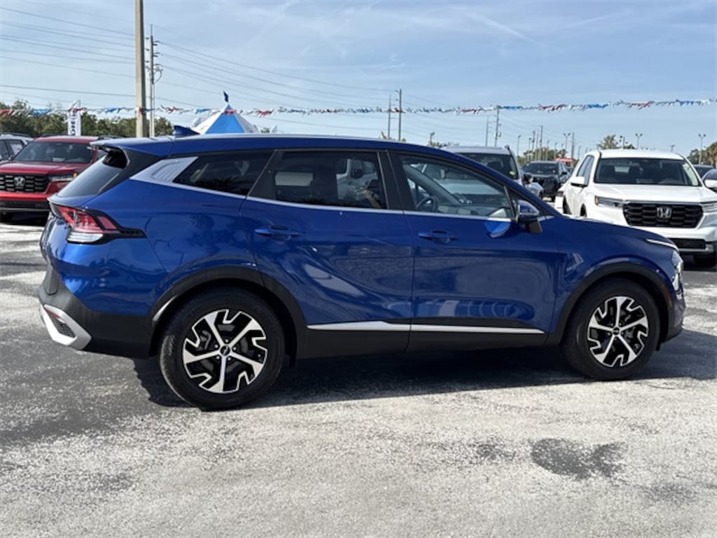 18" Machined Alloy Wheels, 4-Wheel Disc Brakes, 6 Speakers, ABS brakes, Air Conditioning, Alloy wheels, AM/FM radio: SiriusXM, Apple CarPlay & Android Auto, Auto High-beam Headlights, Automatic temperature control, Axle Ratio: 3.648, Brake assist, Bumpers: body-color, Carpeted Floor Mats, Compass, Cruise Control, Delay-off headlights, Driver door bin, Driver vanity mirror, Dual front impact airbags, Dual front side impact airbags, Electronic Stability Control, Emergency communication system, Four wheel independent suspension, Front anti-roll bar, Front Bucket Seats, Front Center Armrest, Front dual zone A/C, Fully automatic headlights, Heated door mirrors, Heated Front Bucket Seats, Heated front seats, Illuminated entry, Leather Shift Knob, Leather steering wheel, Leatherette Seat Trim, Low tire pressure warning, Navigation System, Occupant sensing airbag, Outside temperature display, Overhead airbag, Overhead console, Panic alarm, Passenger door bin, Passenger vanity mirror, Power door mirrors, Power driver seat, Power steering, Power windows, Radio: AM/FM/HD Audio System, Rain sensing wipers, Rear anti-roll bar, Rear seat center armrest, Rear side impact airbag, Rear window defroster, Rear window wiper, Remote keyless entry, Security system, Speed-sensing steering, Split folding rear seat, Spoiler, Steering wheel mounted audio controls, Tachometer, Telescoping steering wheel, Tilt steering wheel, Traction control, Trip computer, Turn signal indicator mirrors, and Variably intermittent wipers. 18" Machined Alloy Wheels, 4-Wheel Disc Brakes, 6 Speakers, ABS brakes, Air Conditioning, Alloy wheels, AM/FM radio: SiriusXM, Apple CarPlay & Android Auto, Auto High-beam Headlights, Automatic temperature control, Axle Ratio: 3.648, Brake assist, Bumpers: body-color, Carpeted Floor Mats, Compass, Cruise Control, Delay-off headlights, Driver door bin, Driver vanity mirror, Dual front impact airbags, Dual front side impact airbags, Electronic Stability Control, Emergency communication system, Four wheel independent suspension, Front anti-roll bar, Front Bucket Seats, Front Center Armrest, Front dual zone A/C, Fully automatic headlights, Heated door mirrors, Heated Front Bucket Seats, Heated front seats, Illuminated entry, Leather Shift Knob, Leather steering wheel, Leatherette Seat Trim, Low tire pressure warning, Navigation System, Occupant sensing airbag, Outside temperature display, Overhead airbag, Overhead console, Panic alarm, Passenger door bin, Passenger vanity mirror, Power door mirrors, Power driver seat, Power steering, Power windows, Radio: AM/FM/HD Audio System, Rain sensing wipers, Rear anti-roll bar, Rear seat center armrest, Rear side impact airbag, Rear window defroster, Rear window wiper, Remote keyless entry, Security system, Speed-sensing steering, Split folding rear seat, Spoiler, Steering wheel mounted audio controls, Tachometer, Telescoping steering wheel, Tilt steering wheel, Traction control, Trip computer, Turn signal indicator mirrors, Variably intermittent wipers. 2024 Kia Sportage EX Sapphire Blue Clean CARFAX. Odometer is 4308 miles below market average! 25/33 City/Highway MPG All vehicles have the Red Alert rear end deterrent third brake light safety system installed for $499. Dealer Document Processing Fee of 899 -- this charge represents cost and profit to the dealer for items such as inspections, cleaning, and adjusting vehicles and preparing documents related to the sale.