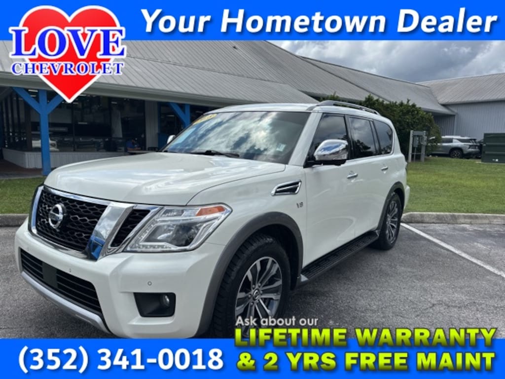 13 Speakers, 2.937 Axle Ratio, 3rd row seats: split-bench, 4-Wheel Disc Brakes, ABS brakes, Air Conditioning, Alloy wheels, AM/FM radio: SiriusXM, Anti-whiplash front head restraints, Auto tilt-away steering wheel, Auto-dimming door mirrors, Auto-dimming Rear-View mirror, Auto-leveling suspension, Automatic temperature control, Brake assist, Bumpers: body-color, CD player, Cruise Control, Delay-off headlights, Driver door bin, Driver vanity mirror, Dual front impact airbags, Dual front side impact airbags, Electronic Stability Control, Emergency communication system: NissanConnect Services, Four wheel independent suspension, Front anti-roll bar, Front Bucket Seats, Front Center Armrest, Front dual zone A/C, Front fog lights, Front reading lights, Fully automatic headlights, Garage door transmitter: HomeLink, Heated door mirrors, Heated Front Bucket Seats w/Driver Memory, Heated front seats, Illuminated entry, Leather Shift Knob, Leather-Appointed Seat Trim, Low tire pressure warning, Memory seat, Navigation System, Occupant sensing airbag, Outside temperature display, Overhead airbag, Overhead console, Panic alarm, Passenger door bin, Passenger vanity mirror, Power door mirrors, Power driver seat, Power Liftgate, Power passenger seat, Power steering, Power windows, Radio data system, Radio: Bose AM/FM/SXM/CD/MP3/HD Radio, Rain sensing wipers, Rear air conditioning, Rear anti-roll bar, Rear reading lights, Rear seat center armrest, Rear window defroster, Rear window wiper, Reclining 3rd row seat, Remote keyless entry, Roof rack: rails only, Security system, Speed-sensing steering, Speed-Sensitive Wipers, Split folding rear seat, Spoiler, Steering wheel memory, Steering wheel mounted audio controls, Tachometer, Telescoping steering wheel, Tilt steering wheel, Traction control, Trip computer, Turn signal indicator mirrors, Variably intermittent wipers, Voltmeter, and Wheels: 20" Machined Finish Painted Alloy. 13 Speakers, 2.937 Axle Ratio, 3rd row seats: split-bench, 4-Wheel Disc Brakes, ABS brakes, Air Conditioning, Alloy wheels, AM/FM radio: SiriusXM, Anti-whiplash front head restraints, Auto tilt-away steering wheel, Auto-dimming door mirrors, Auto-dimming Rear-View mirror, Auto-leveling suspension, Automatic temperature control, Brake assist, Bumpers: body-color, CD player, Cruise Control, Delay-off headlights, Driver door bin, Driver vanity mirror, Dual front impact airbags, Dual front side impact airbags, Electronic Stability Control, Emergency communication system: NissanConnect Services, Four wheel independent suspension, Front anti-roll bar, Front Bucket Seats, Front Center Armrest, Front dual zone A/C, Front fog lights, Front reading lights, Fully automatic headlights, Garage door transmitter: HomeLink, Heated door mirrors, Heated Front Bucket Seats w/Driver Memory, Heated front seats, Illuminated entry, Leather Shift Knob, Leather-Appointed Seat Trim, Low tire pressure warning, Memory seat, Navigation System, Occupant sensing airbag, Outside temperature display, Overhead airbag, Overhead console, Panic alarm, Passenger door bin, Passenger vanity mirror, Power door mirrors, Power driver seat, Power Liftgate, Power passenger seat, Power steering, Power windows, Radio data system, Radio: Bose AM/FM/SXM/CD/MP3/HD Radio, Rain sensing wipers, Rear air conditioning, Rear anti-roll bar, Rear reading lights, Rear seat center armrest, Rear window defroster, Rear window wiper, Reclining 3rd row seat, Remote keyless entry, Roof rack: rails only, Security system, Speed-sensing steering, Speed-Sensitive Wipers, Split folding rear seat, Spoiler, Steering wheel memory, Steering wheel mounted audio controls, Tachometer, Telescoping steering wheel, Tilt steering wheel, Traction control, Trip computer, Turn signal indicator mirrors, Variably intermittent wipers, Voltmeter, Wheels: 20" Machined Finish Painted Alloy. 2018 Nissan Armada SL Pearl White All vehicles have the Red Alert rear end deterrent third brake light safety system install