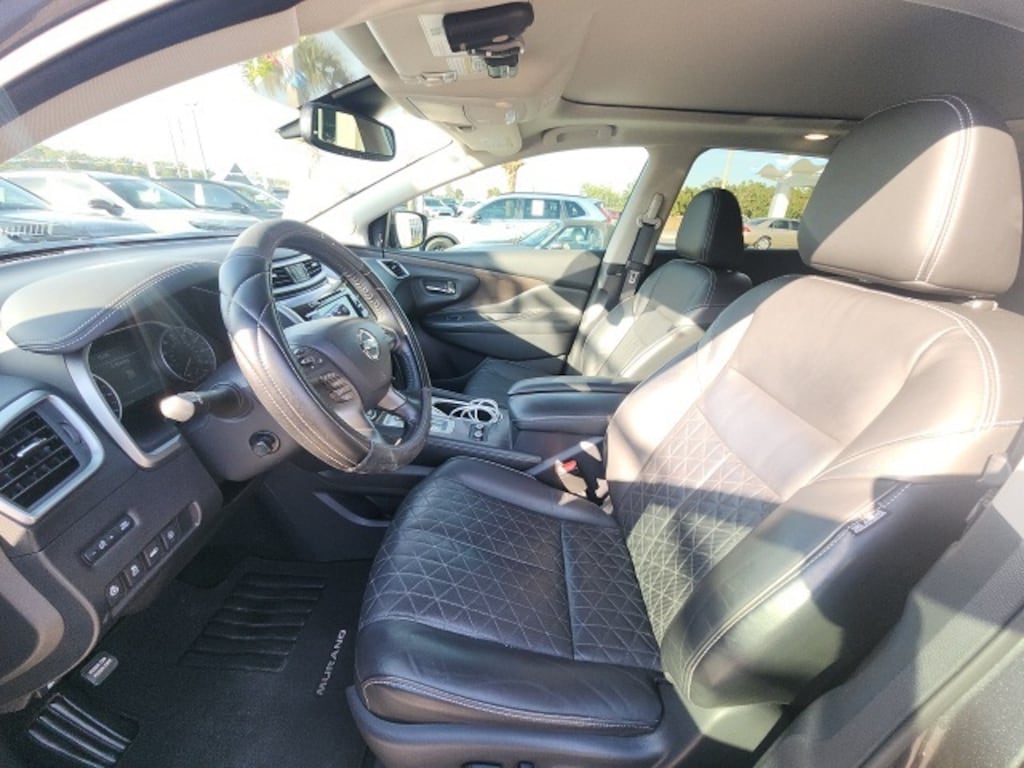 Cargo Package (Cargo Area Protector, Cargo Net, First Aid Kit, and Retractable Cargo Cover), CVT with Xtronic, 11 Speakers, 4-Wheel Disc Brakes, 4.667 Axle Ratio, ABS brakes, Accessory Illuminated Kick Plates, Air Conditioning, Alloy wheels, AM/FM radio: SiriusXM, AM/FM/CD/MP3/WMA Audio System, Auto High-beam Headlights, Auto tilt-away steering wheel, Auto-dimming Rear-View mirror, Automatic temperature control, Blind Spot Warning, Brake assist, Bumpers: body-color, Carpeted Floor Mats & Carpeted Cargo Mat, CD player, Child-Seat-Sensing Airbag, Climate-Controlled Front Bucket Seats, Compass, Cruise Control, Delay-off headlights, Driver door bin, Driver vanity mirror, Dual front impact airbags, Dual front side impact airbags, Electronic Stability Control, Emergency communication system: NissanConnect Services, Four wheel independent suspension, Front anti-roll bar, Front Bucket Seats, Front Center Armrest, Front dual zone A/C, Front fog lights, Front reading lights, Fully automatic headlights, Garage door transmitter: HomeLink, Heated door mirrors, Heated front seats, Heated rear seats, Heated steering wheel, Illuminated entry, Illuminated Kick Plate, Knee airbag, Low tire pressure warning, Memory seat, Navigation System, NissanConnect featuring Apple CarPlay and Android Auto, NissanConnect Services Powered By SiriusXM, Occupant sensing airbag, Outside temperature display, Overhead airbag, Overhead console, Panic alarm, Passenger door bin, Passenger vanity mirror, Power door mirrors, Power driver seat, Power Liftgate, Power moonroof, Power passenger seat, Power steering, Power windows, Radio data system, Rear anti-roll bar, Rear Bumper Protector, Rear reading lights, Rear seat center armrest, Rear side impact airbag, Rear window defroster, Rear window wiper, Remote keyless entry, Roof rack: rails only, Security system, Semi-Aniline Leather-Appointed Seat Trim, Speed-sensing steering, Speed-Sensitive Wipers, Splash Guards, Split folding rear seat, Spoiler, Steering wheel memory, Steering wheel mounted audio controls, Tachometer, Telescoping steering wheel, Tilt steering wheel, Traction control, Trip computer, Turn signal indicator mirrors, Variably intermittent wipers, Ventilated front seats, and Wheels: 20" Dark Hyper Silver. CVT with Xtronic, 11 Speakers, 4-Wheel Disc Brakes, 4.667 Axle Ratio, ABS brakes, Accessory Illuminated Kick Plates, Air Conditioning, Alloy wheels, AM/FM radio: SiriusXM, AM/FM/CD/MP3/WMA Audio System, Auto High-beam Headlights, Auto tilt-away steering wheel, Auto-dimming Rear-View mirror, Automatic temperature control, Blind Spot Warning, Brake assist, Bumpers: body-color, Cargo Area Protector, Cargo Net, Cargo Package, Carpeted Floor Mats & Carpeted Cargo Mat, CD player, Child-Seat-Sensing Airbag, Climate-Controlled Front Bucket Seats, Compass, Cruise Control, Delay-off headlights, Driver door bin, Driver vanity mirror, Dual front impact airbags, Dual front side impact airbags, Electronic Stability Control, Emergency communication system: NissanConnect Services, First Aid Kit, Four wheel independent suspension, Front anti-roll bar, Front Bucket Seats, Front Center Armrest, Front dual zone A/C, Front fog lights, Front reading lights, Fully automatic headlights, Garage door transmitter: HomeLink, Heated door mirrors, Heated front seats, Heated rear seats, Heated steering wheel, Illuminated entry, Illuminated Kick Plate, Knee airbag, Low tire pressure warning, Memory seat, Navigation System, NissanConnect featuring Apple CarPlay and Android Auto, NissanConnect Services Powered By SiriusXM, Occupant sensing airbag, Outside temperature display, Overhead airbag, Overhead console, Panic alarm, Passenger door bin, Passenger vanity mirror, Power door mirrors, Power driver seat, Power Liftgate, Power moonroof, Power passenger seat, Power steering, Power windows, Radio data system, Rear anti-roll bar, Rear Bumper Protector, Rear reading lights, Rear seat center armrest, Rear side impact airbag, Rear window defrost