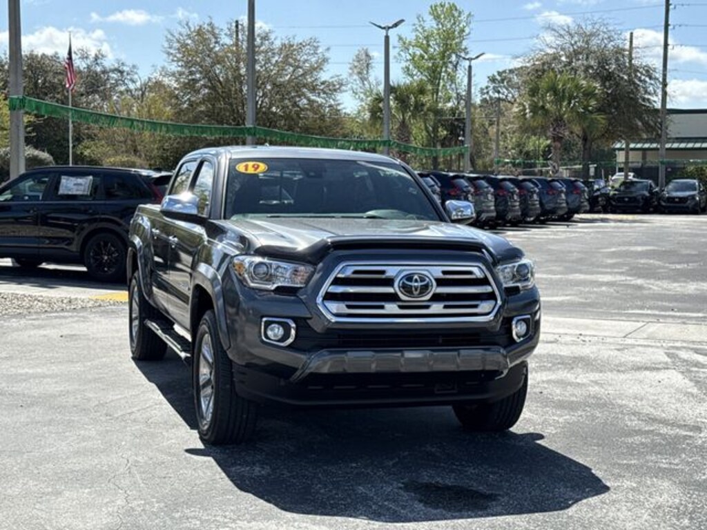 ABS brakes, Active Cruise Control, Alloy wheels, Electronic Stability Control, Front dual zone A/C, Illuminated entry, Leather Seat Trim, Low tire pressure warning, Navigation System, Power moonroof, Remote keyless entry, Traction control, 7 Speakers, Air Conditioning, AM/FM radio: SiriusXM, Anti-whiplash front head restraints, Auto High-beam Headlights, Auto-dimming Rear-View mirror, Automatic temperature control, Axle Ratio: 3.91, Brake assist, Bumpers: body-color, CD player, Cruise Control, Driver door bin, Driver vanity mirror, Dual front impact airbags, Dual front side impact airbags, Front anti-roll bar, Front Bucket Seats, Front Center Armrest, Front fog lights, Front reading lights, Front wheel independent suspension, Garage door transmitter: HomeLink, Knee airbag, Leather Shift Knob, Occupant sensing airbag, Outside temperature display, Overhead airbag, Overhead console, Panic alarm, Passenger door bin, Passenger vanity mirror, Power door mirrors, Power steering, Power windows, Radio: Entune Premium JBL AM/FM/CD w/Nav & App Ste, Rear Parking Sensors, Rear step bumper, Rear View Camera, Security system, Speed-sensing steering, Split folding rear seat, Steering wheel mounted audio controls, Tachometer, Telescoping steering wheel, Tilt steering wheel, Trip computer, Turn signal indicator mirrors, Variably intermittent wipers, and Wheels: 18" x 7.5" Polished Alloy. ABS brakes, Active Cruise Control, Alloy wheels, Electronic Stability Control, Front dual zone A/C, Illuminated entry, Leather Seat Trim, Low tire pressure warning, Navigation System, Power moonroof, Remote keyless entry, Traction control. Recent Arrival! 2019 Toyota Tacoma Limited V6 Magnetic Gray Odometer is 34073 miles below market average! Awards: